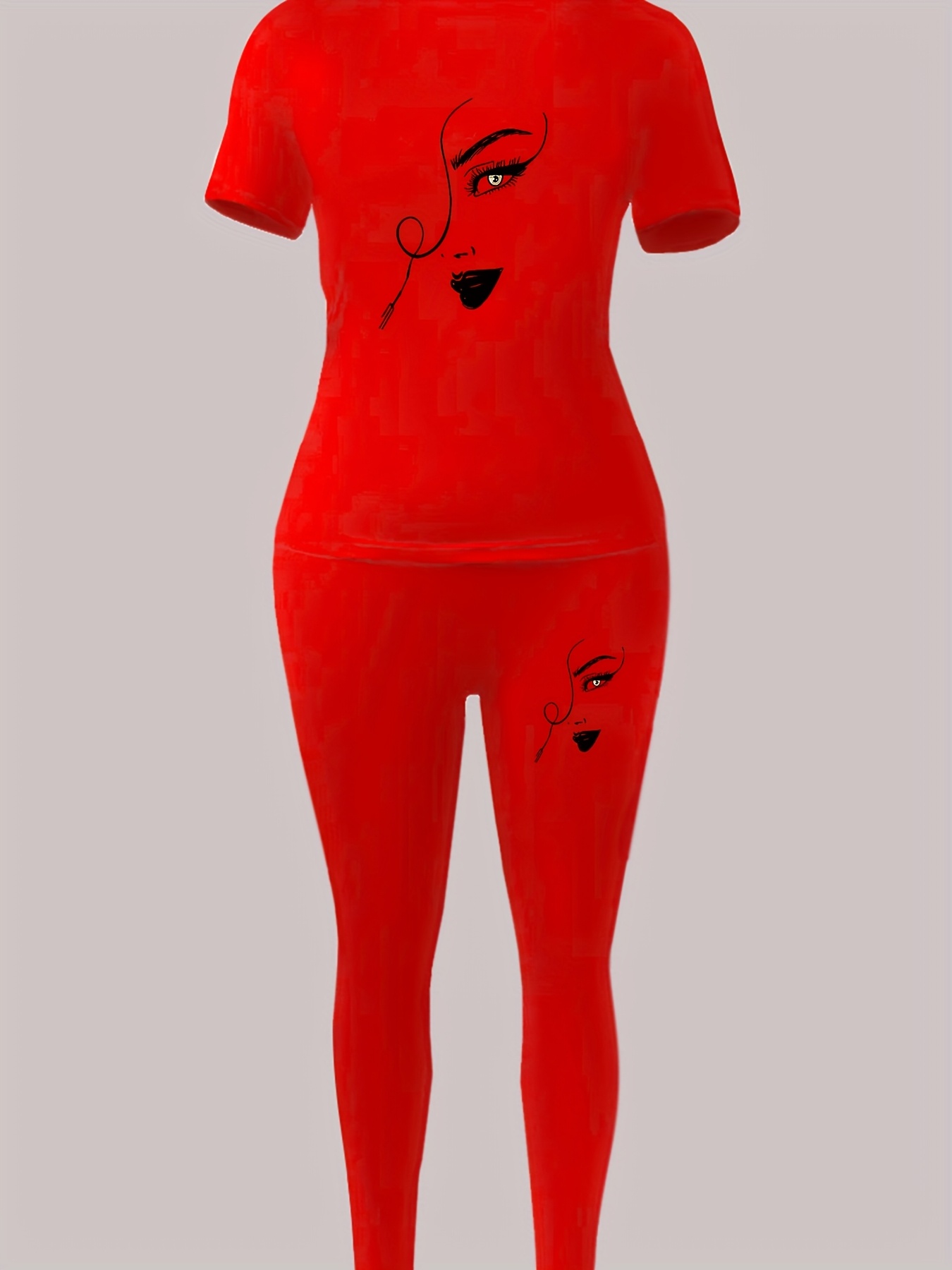 XDCH12LA10 European and American Women's Casual Sporty Round Neck Loose Short Sleeve Long Pants Set with Unique Print Two-Piece Outfit