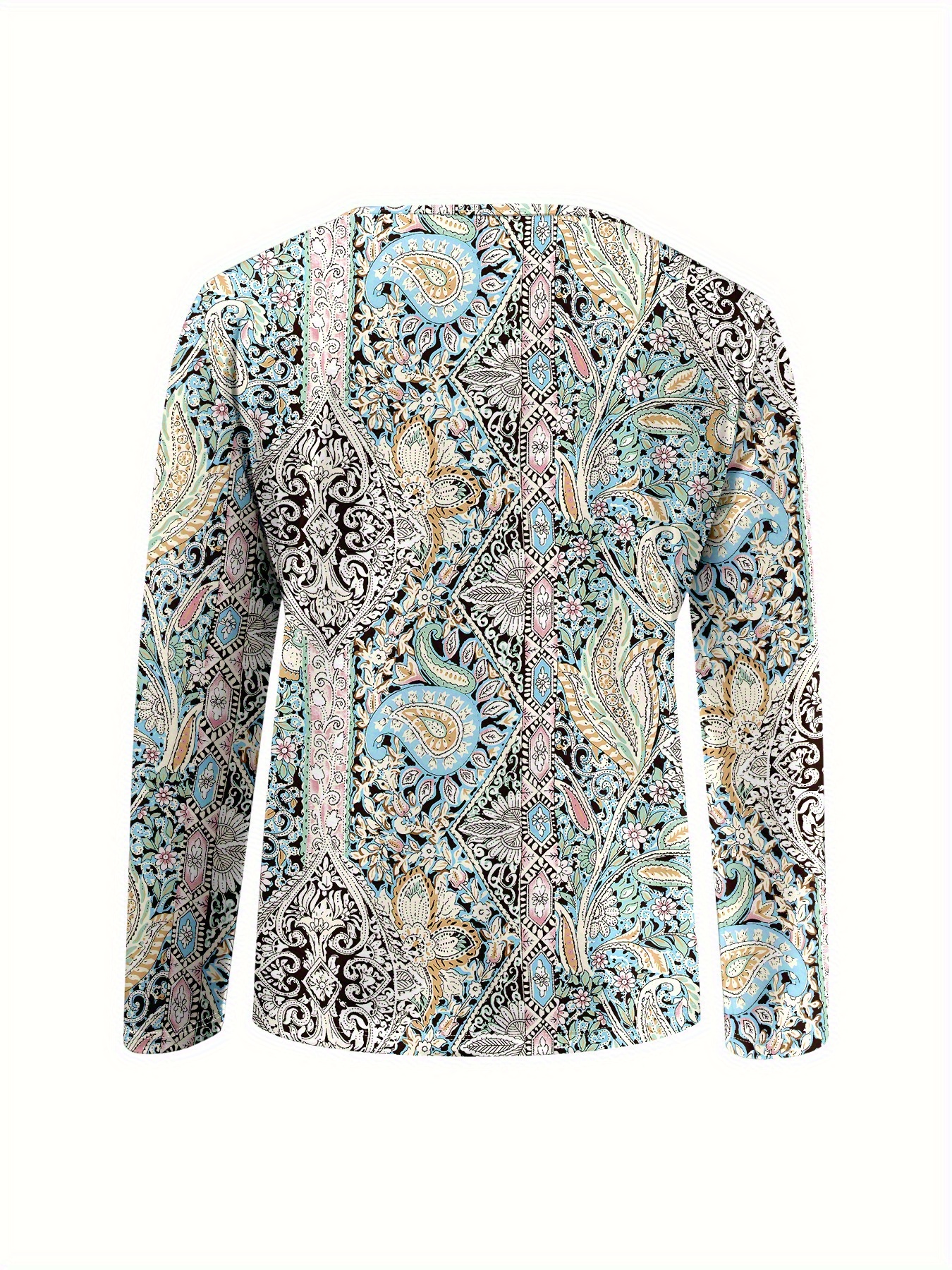 Plus Size, Plus Size Women's Elegant V-Neck Long Sleeve T-Shirt - All-Over Floral Print, Stretchy Mid-Weight Fabric, Machine Washable, Autumn Winter Casual & Formal Tops